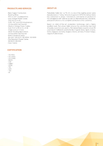 from 3 kV to 65 kV (Cu & Al) of quality customers are used to. Pamukkale Kablo exports to over 30